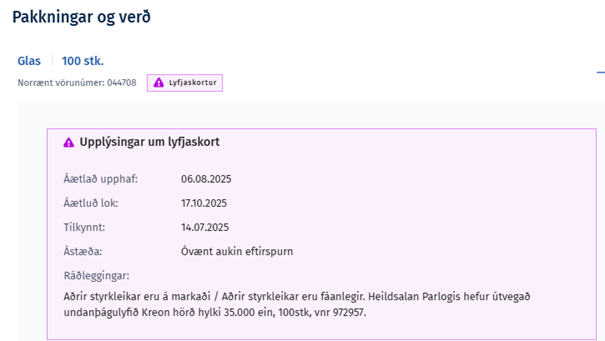 Nýlega var ýmsum upplýsingum sem varða lyfjaskort bætt við í sérlyfjaskrá, notendum til hagsbóta. Markmiðið er að allar upplýsingar um lyfjaskort séu aðgengilegar á einum stað.